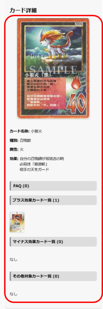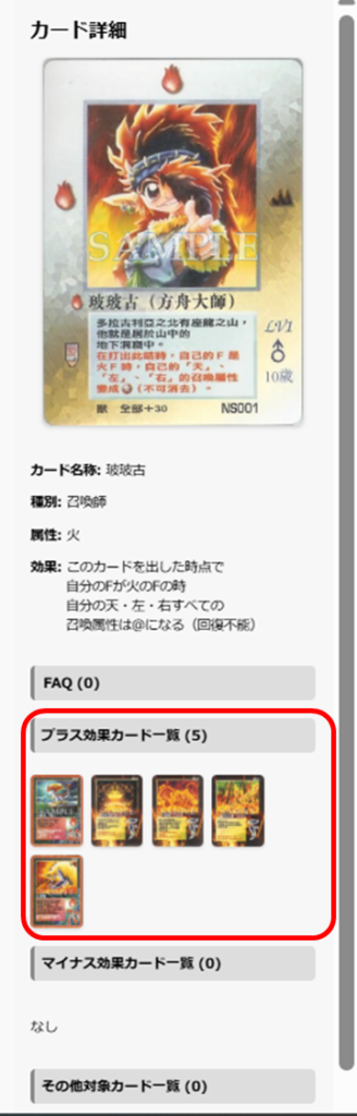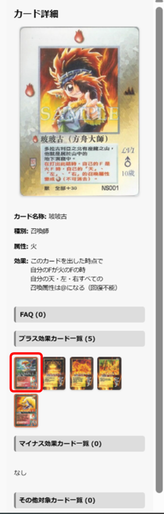 「プラス効果カード一覧」に表示されているカードをクリックすると、そのカードのカード詳細に切り替わるようになりました。