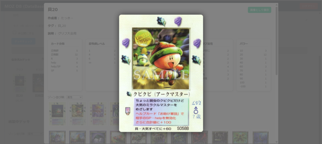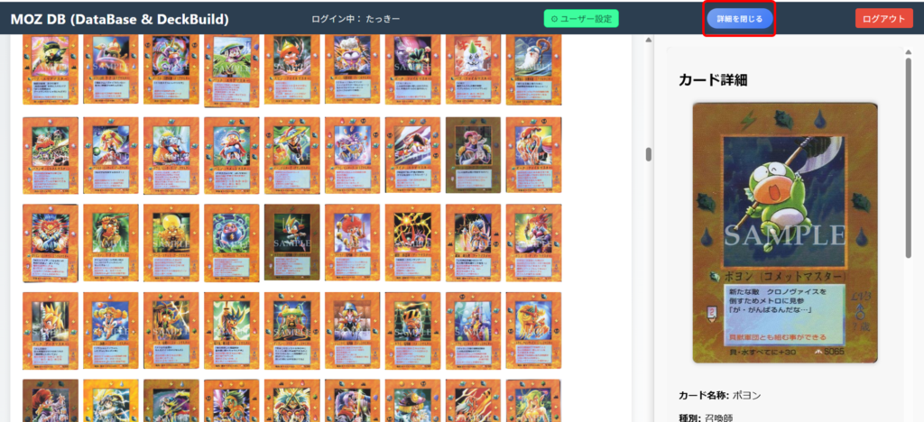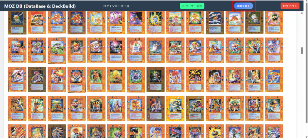 「デッキ詳細」の画面で、カードをクリックした際に、拡大表示が出来るようになりました。